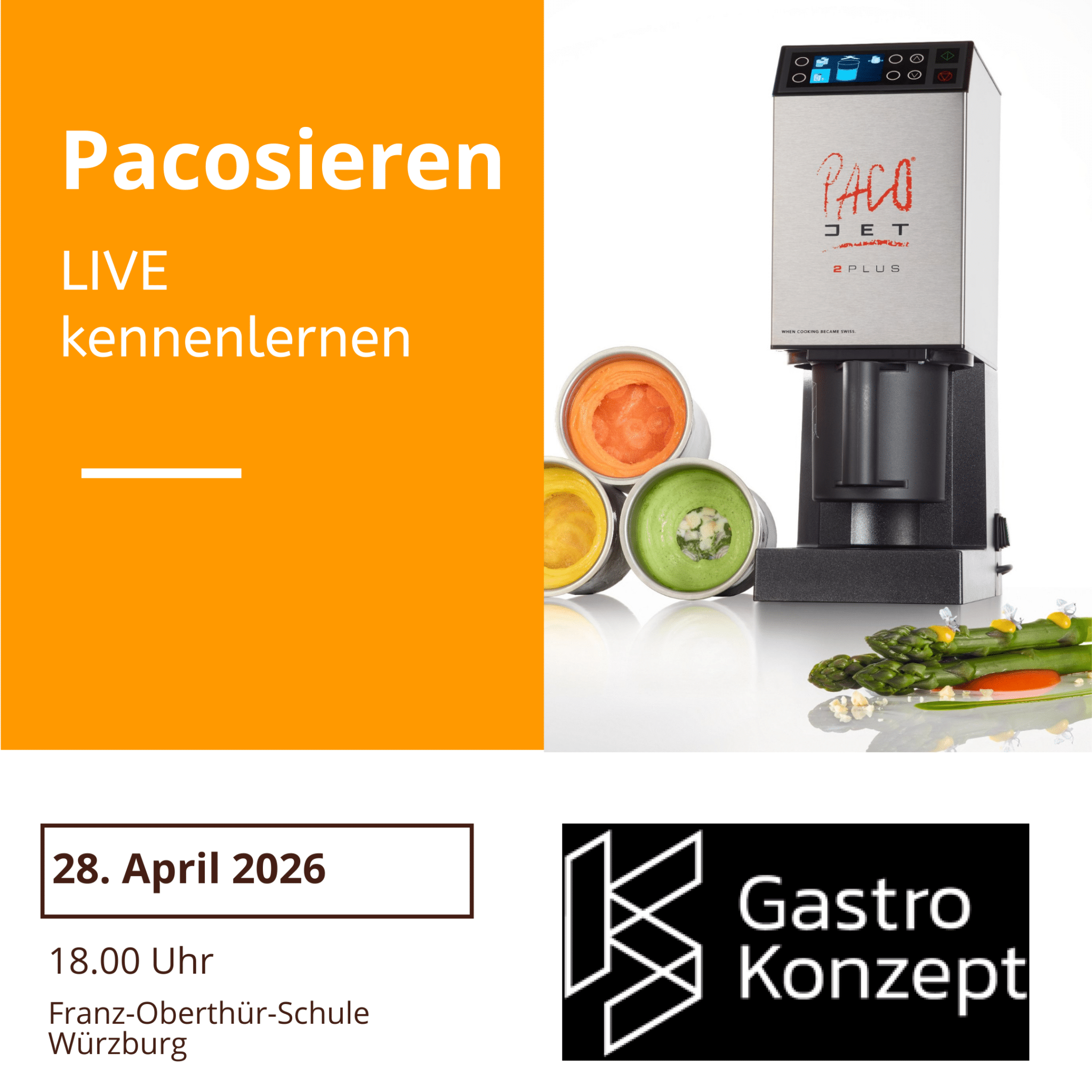Unter der Leitung eines Pacojet-Fachberaters erleben wir den praxisnahen Einsatz des Pacojet. Wir werden in das Pacojet Kochsystem mit all seinen Funktionen und Möglichkeiten eingeführt. Kreative Beispiele, gepaart mit vielen wertvollen Insider Tipps! Ein Event für alle Köche die einen haben und für die, die zukünftig damit arbeiten möchten. Der Kurs wird von KS Gastro-Konzept […] |